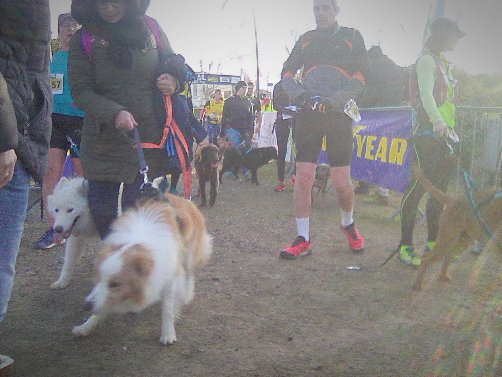 Alors c’est parti tan pis, dossard récupéré, harnais bien serré et hydratation du toutou effectuée, on prend place sur la ligne de départ… Derniers, c’est ça d’arriver en retard, de ne pas avoir une Delphine pour nous rappeler de se dépêcher. Tan pis il va falloir remonter et c’est ce que Monsieur K arrivera à faire avec brio tout au long de la course pour finalement se classer troisième. Un podium oui, pour le premier canicross officiellement Septimanien.