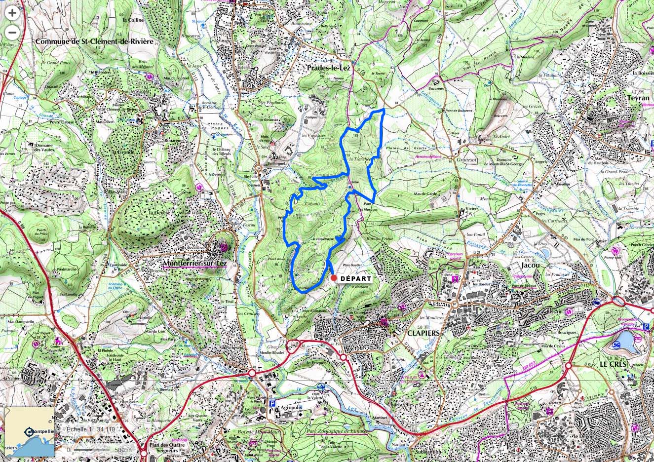Le Dimanche 20 Janvier à 9h00 Monsieur K et son maître vous proposent d’aller à la découverte des petits sentiers cachés du Bois Du Prieur à Clapiers. Une balade très proche de Montpellier mais pourtant très nature. La boucle proposée longue de 9km est la suivant :